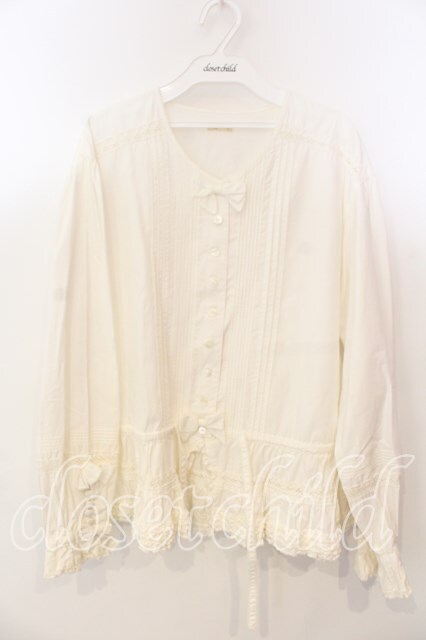 KETTY / フリルリボンノーカラーブラウス シロ O-25-12-17-029-EL-BL-IG-OS