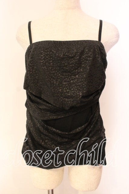 Qutie Frash / サラシベアトップキャミ L ブラック×レオパード O-25-12-17-011-QU-TO-IG-OS