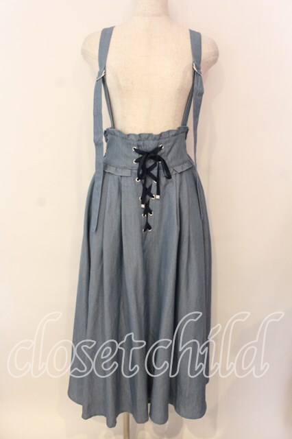 axes femme / サス付レースアップロングスカート ライトインディゴ O-25-12-18-039-AX-SK-IG-OS