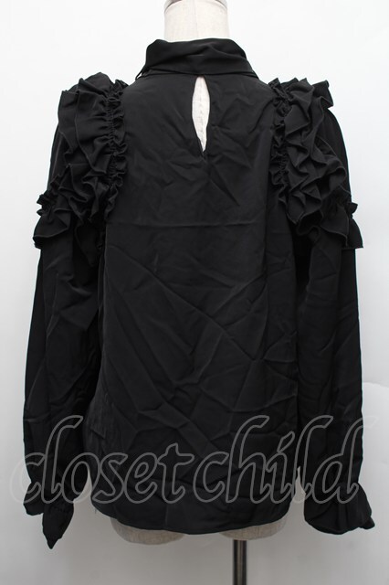 axes femme / リボン付フリルデザインブラウス 黒 S-25-12-17-029-AX-BL-AS-ZS