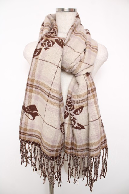 axes femme / チェック×バラ柄ストール 生成り Y-25-12-22-020-AX-ZA-SZ-ZY [戻る]