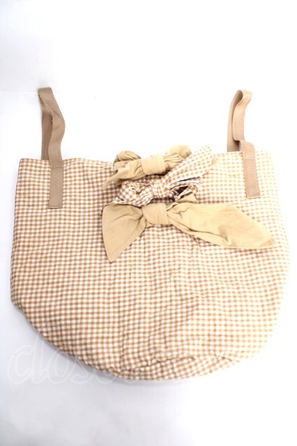PINK HOUSE / リボン付きギンガム柄バケツバッグ ベージュ Y-25-12-22-038-LO-BG-SZ-ZY