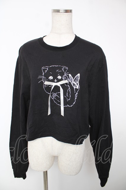 Hauls / お猫様りぼんクロップドロンTEE 黒 Y-25-12-22-110-LO-TO-SZ-ZY