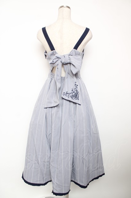 axes femme / バックリボンストライプジャンパースカート F サックス Y-25-12-22-142-AX-OP-SZ-ZY