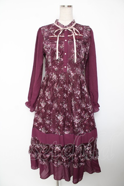axes femme / フラワープリントレーシーワンピース M ワイン Y-25-12-22-146-AX-OP-SZ-ZY