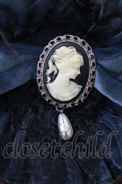 MARBLE / カメオ・パール粒ブローチ付きクラシカルボンネット ネイビー H-25-12-24-1074-GO-AC-KB-ZH