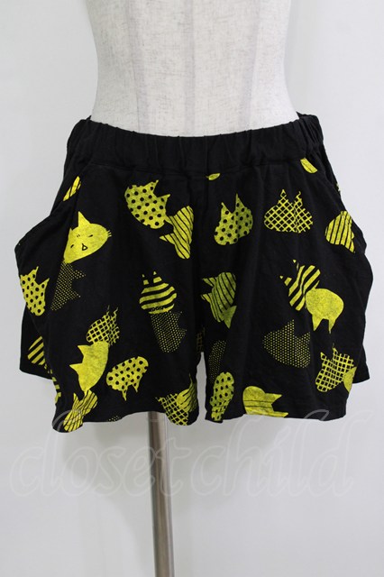 MINT NeKO / 総柄ショートパンツ ブラック×イエロー H-25-12-24-1029-HN-PA-KB-ZH