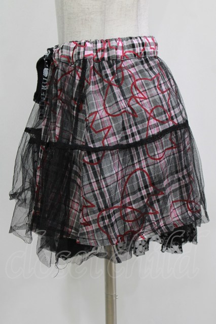 MINT NeKO / バブルネコチェックチュールレイヤードスカート ピンク×ブラック H-25-12-24-1023-HN-SK-KB-ZH [戻る]