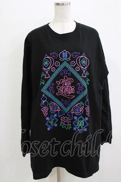 LISTEN FLAVOR / 招福チャイナロンT ブラック H-25-12-24-1061-PU-TS-KB-ZH
