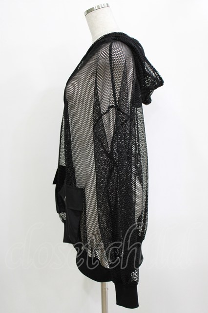LISTEN FLAVOR / メッシュシースルージップパーカー ブラック H-25-12-24-1044-PU-TO-KB-ZH