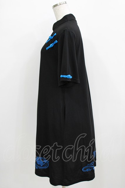 LISTEN FLAVOR / ドラゴンシュアンシーチャイナワンピ ブラック×ブルー H-25-12-24-1013-PU-OP-KB-ZH