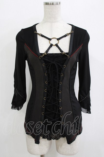 Ozz Croce / ハーネス風編上トップス ブラック H-25-12-24-1036-OO-TO-KB-ZH