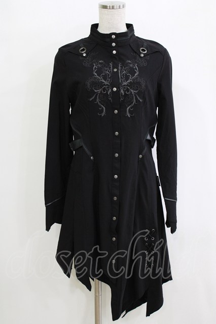 Ozz Croce / 刺繍イレギュラーロングシャツ ブラック H-25-12-24-1047-OO-BL-KB-ZH