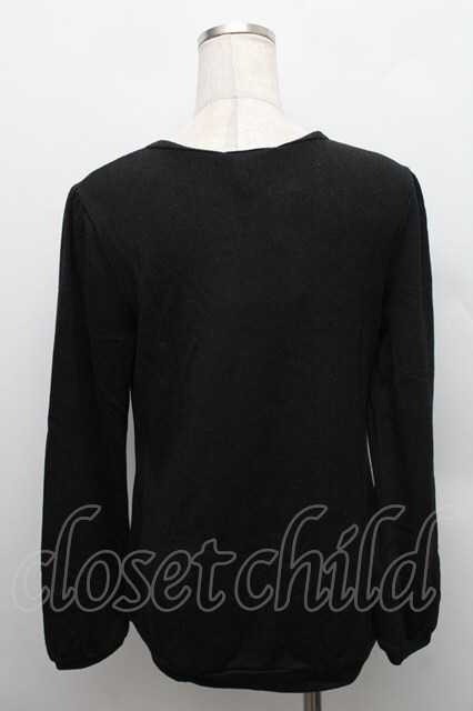 axes femme / リボンポケットVネックプルオーバー 黒 S-25-12-18-024-AX-TO-HR-ZS