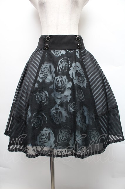axes femme / カラー重ね透かしスカート 黒xグリーン S-25-12-18-055-AX-SK-HR-ZS