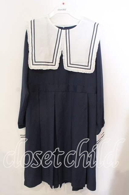 FLC / 皆方由衣さんコラボ/セーラーカラーワンピース 3L ネイビー O-25-12-19-065-0-OP-OW-OS