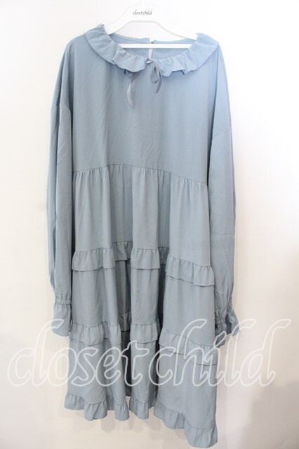 FLC / 皆方由衣さんコラボ/ティアードワンピース L サックス O-25-12-19-067-0-OP-OW-OS