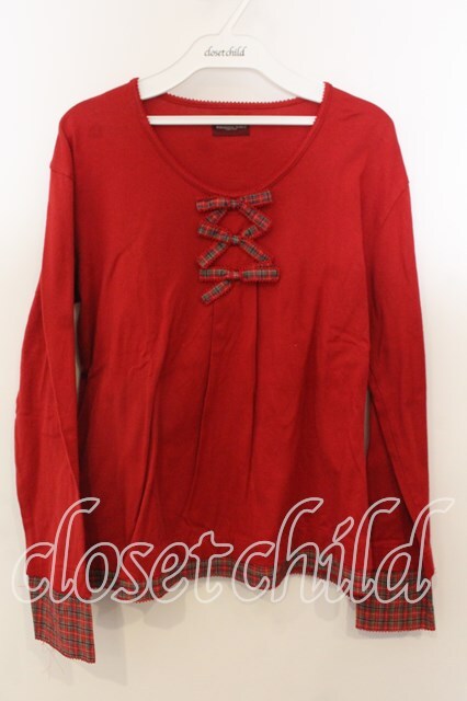 WONDERFUL WORLD / タータン切替カットソー アカ O-25-12-19-027-LO-TO-OW-OS