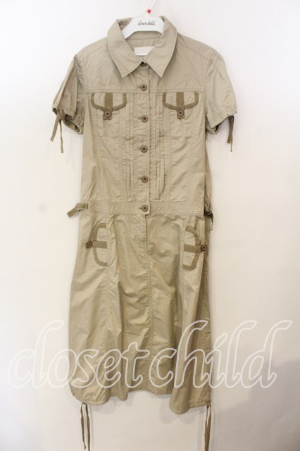 PINK HOUSE / 布テープ配色ワンピース カーキベージュ O-25-12-19-044-LO-OP-OW-OS