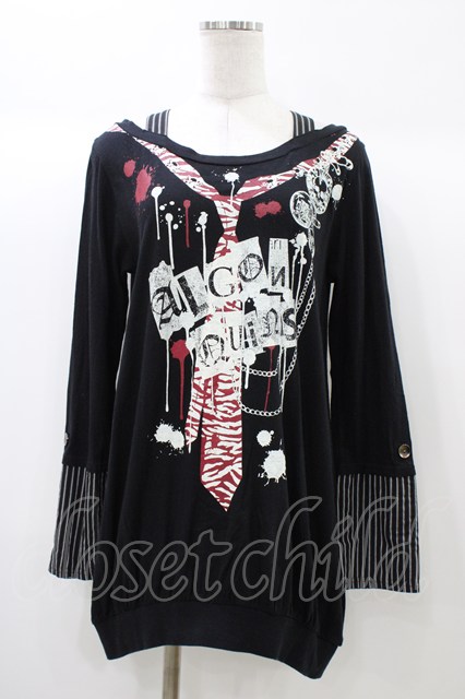 ALGONQUINS / ストライプ切替プリントロングカットソー 黒 H-25-12-26-057-AL-TO-KB-ZH