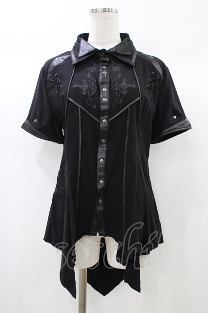 Ozz Croce / ダブルカラー刺繍ブラウス ブラック H-25-12-26-058-OO-BL-KB-ZH