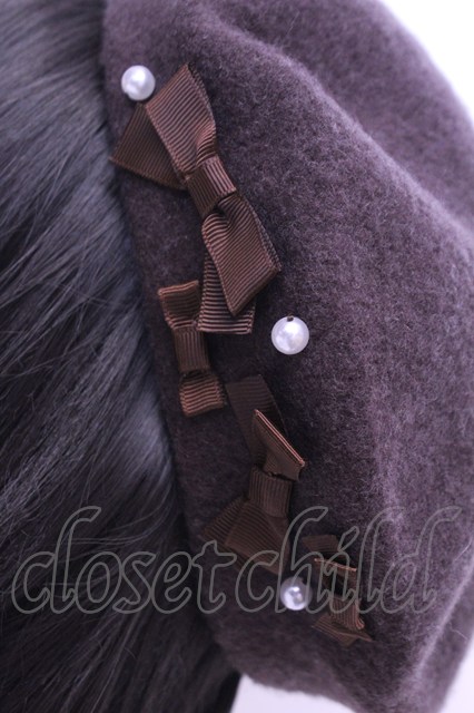 m petit by misako / AMミニリボンバスクベレー 57.5cm ブラウン O-25-12-18-2015-LO-AC-OW-OS
