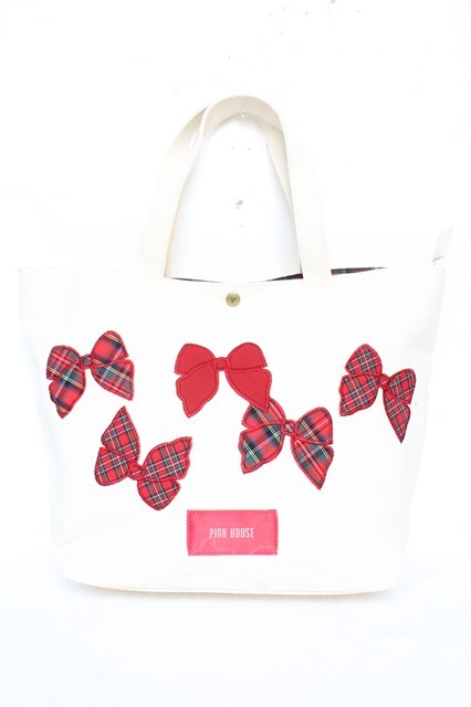 PINK HOUSE / リボンアップリケ トート オフ白 Y-25-12-18-016-LO-BG-SZ-ZY