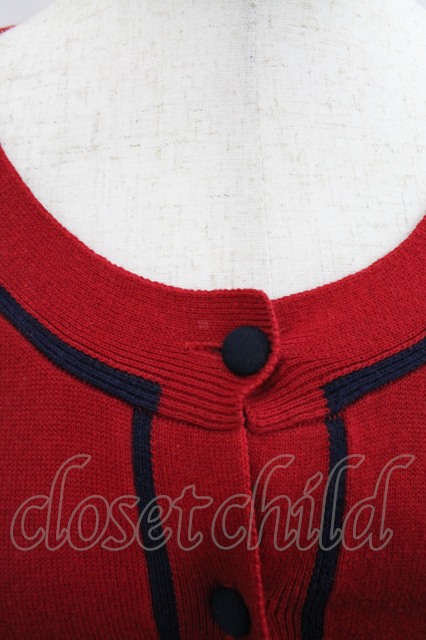 Fi.n.t / 袖口リボンバイカラーニットカーディガン レッド×ネイビー I-25-12-18-021-CA-TO-SA-ZI