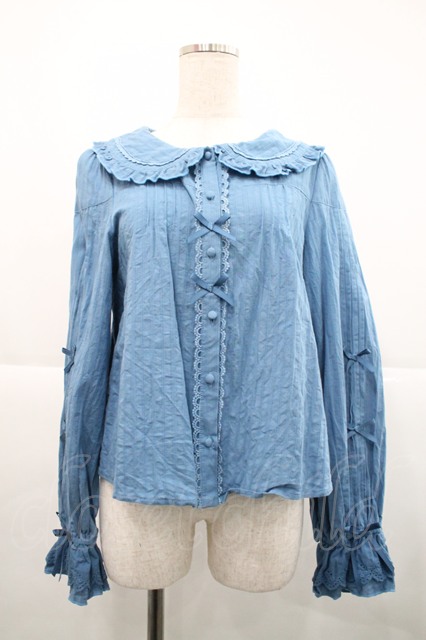 Alice Girl / ストライプ地リボン長袖ブラウス 青 I-25-12-18-001-EL-BL-SA-ZI