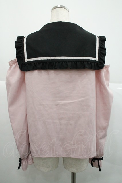 DearMyLove / セーラーオフショルリボンブラウス M ピンクX黒 I-25-12-18-005-EL-BL-SA-ZI