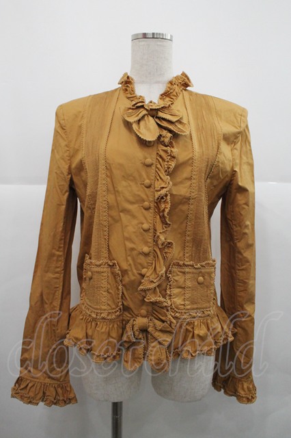 INGEBORG / 立襟ピコフリル&ピンタックブラウス マスタード I-25-12-18-030-LO-BL-SA-ZI