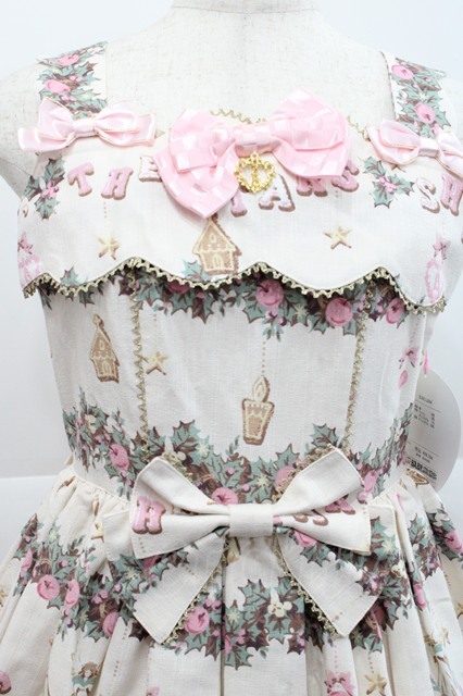 BABY,THE STARS SHINE BRIGHT / くみゃちゃんたちのChristmas Holly Nightスカラップジャンパースカート 白 I-25-12-18-051-BA-OP-SA-ZI [戻る]