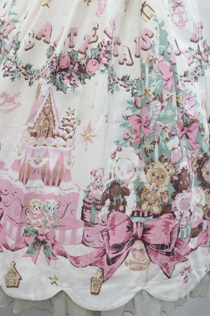 BABY,THE STARS SHINE BRIGHT / くみゃちゃんたちのChristmas Holly Nightスカラップジャンパースカート 白 I-25-12-18-051-BA-OP-SA-ZI