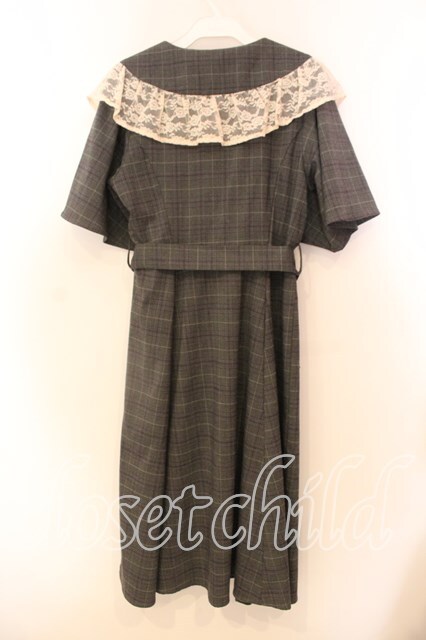 axes femme NOSTALGIE / W釦レース襟チェック柄ワンピース グレー O-25-12-20-046-AX-OP-IG-OS