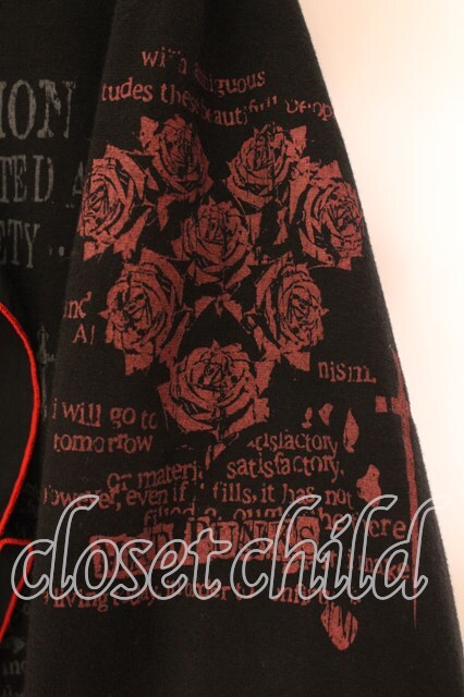 MAD / 英字ptラッフルフリルカットソー L ブラック×レッド O-25-12-20-034-PU-TO-OW-OS
