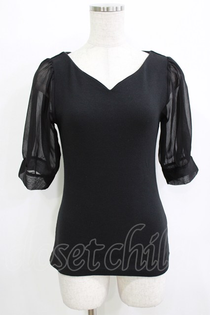 an another angelus / 楊柳シフォンスリーブテレコT Free BLACK H-25-12-27-1045-CA-TO-NS-ZH