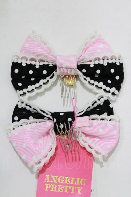 Angelic Pretty / Lovely Dot配色リボンコーム ブラック/ピンク H-25-12-27-1056-AP-AC-NS-ZH [戻る]