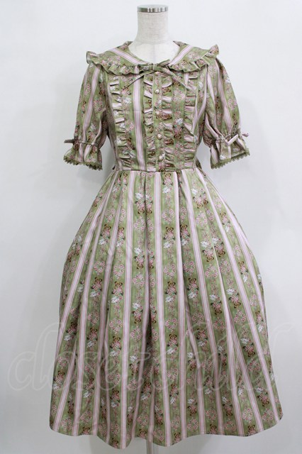 axes femme kawaii / RosyBear柄ワンピース M グリーン H-25-12-27-1010-AX-OP-NS-ZH