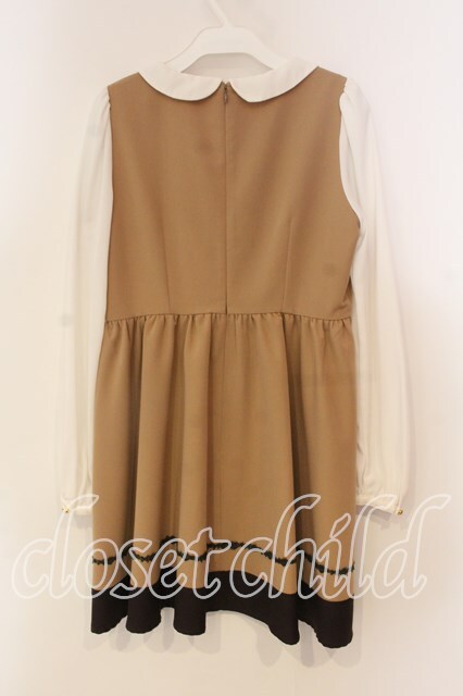 Ank Rouge / レースアップ丸襟ワンピース M ブラウン O-25-12-22-050-CA-OP-OW-OS