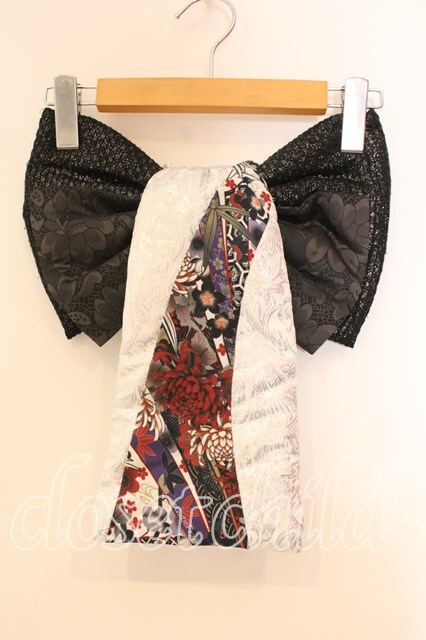 Qutie Frash / 飾り帯 ブラック×オフホワイト O-25-12-22-082-QU-ZA-IG-OS