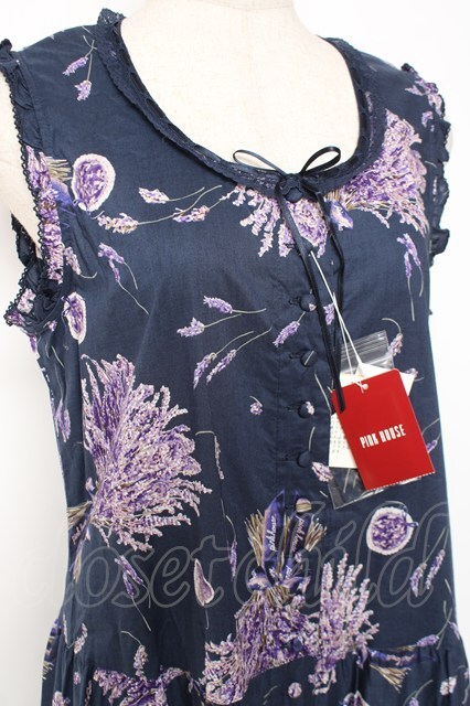 PINK HOUSE / ラベンダープリントノースリーブワンピース F 紺 Y-25-12-20-075-LO-OP-AS-ZY