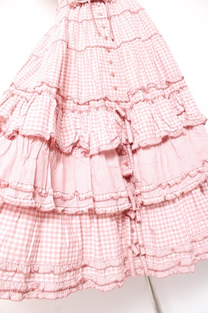 PINK HOUSE / ギンガムチェックパッチワークフリルスカート F ピンク Y-25-12-20-095-LO-SK-SZ-ZY