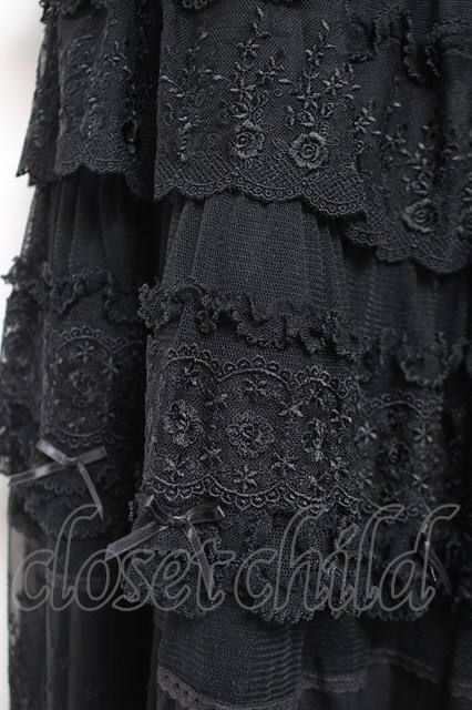 PINK HOUSE / ドットチュール×オリジナルローズチュールレーススカート F 黒 Y-25-12-20-097-LO-SK-SZ-ZY
