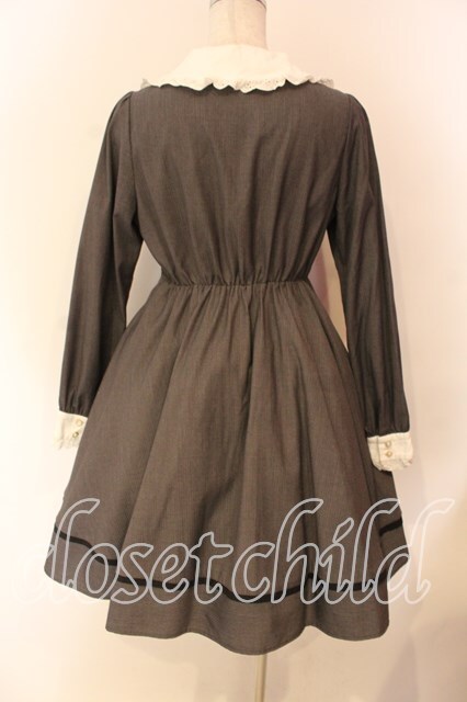 Amavel / リボンタイ付きストライプワンピース F グレー O-25-12-23-051-CA-OP-YM-OS