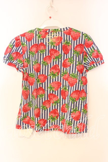 Jane Marple / ストロベリー meets ストライプのパフTシャツ M ネイビー×シロ O-25-12-23-069-JM-TS-IG-OS