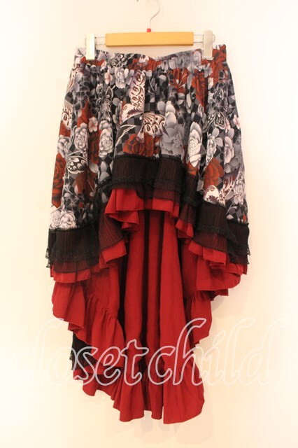 Qutie Frash / 後ろロングスカート ブラックxレッド O-25-12-23-032-QU-SK-YM-OS