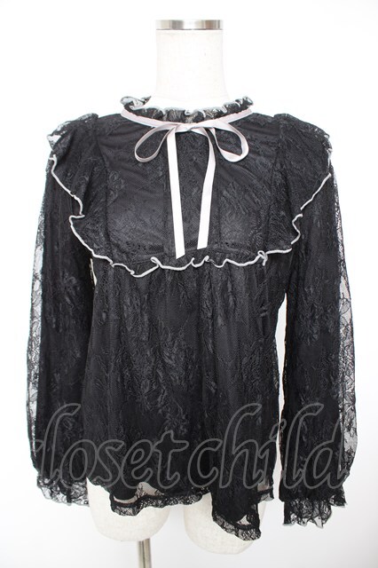axes femme / バイカラーメローレースプルオーバー 黒 Y-25-12-23-056-AX-TO-SZ-ZY