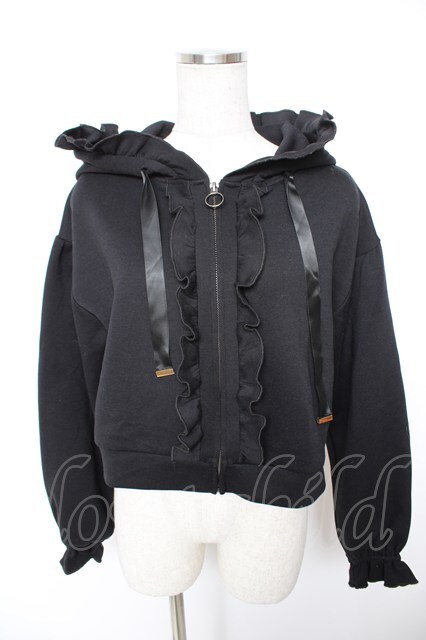 axes femme / ショート丈フリルパーカー F 黒 Y-25-12-23-059-AX-TO-SZ-ZY