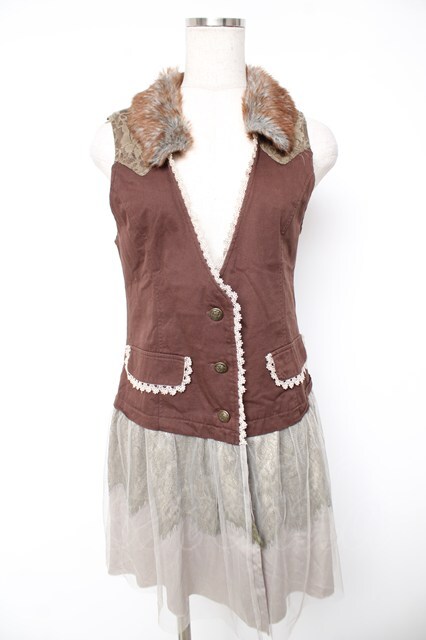 axes femme / ファー付きジレ M チャ Y-25-12-23-112-AX-TO-SZ-ZY