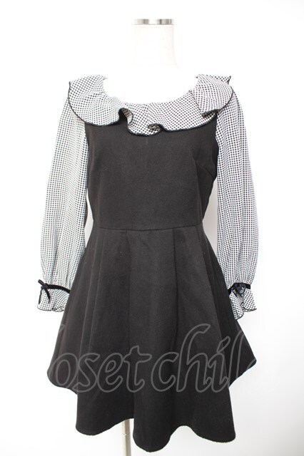 evelyn / フリルカラーワンピース 黒 Y-25-12-23-118-LO-OP-SZ-ZY